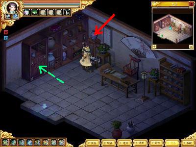 在书房角落处的柜上,小鱼儿发现了开启江别鹤书房密室暗道的机关花瓶,点击后移开了一个书柜,其后露出了密室暗道进入口。