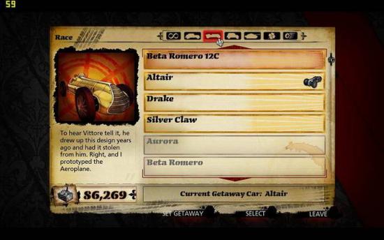 图中我们可以看到,游戏中的车辆分成了:城市居民车,赛车,nazi车,装甲车。下面讲解一下车库解锁。(在这里感谢一下肥肥进行曲同学的成就翻译,同学有其他疑问可以去看帖子)
