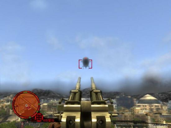 天上一共四艘飞艇,你要做的就是把防空炮做360度旋转射击就可以了,打不完的,到5级警报的时候飞机也来凑热闹了,击落一架又来一架,前仆后继的向你扑来,地下的小喽罗根本连你毛都碰不到,不过撤退的时候有点悬乎了,因为在你打得不亦乐乎的时候,下面街上几乎停满了坦克和装甲车,我就悲剧了,开一辆赛车逃跑的时候,一辆坦克把我的车轰到半空中,另一辆坦克一发炮弹就把我打得去见马克思了