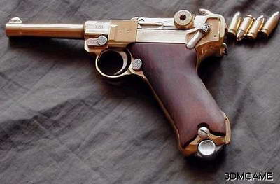 真名应该是 鲁格P08手枪 (外号 贵族) 口径:9mm 全长:270mm 重量:930g 弹容:8发 乔治.鲁格 改进而成 经典武器 德军服役30年
