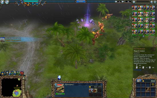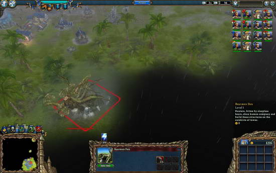地图右下角有Bearman Den(熊人巢穴),基地西北方有火元素守卫的神圣领域。前期不要惹,等有实力在清除掉。