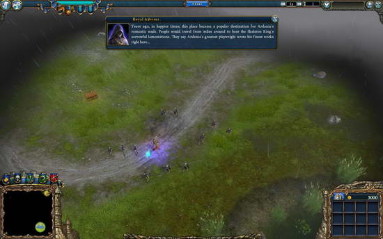 只要到达任务地点后,自动发生剧情。骷髅王再也不能无限招募骷髅兵了,自身能力也下降。等它冲进基地里,干掉它。就是它的技能有片伤效果,还对建筑物有效。要么用矮人驻地的修复技能修复建筑物,要么建筑物被毁了赶紧重新建造,特别是工会,否则你的英雄们有可能离开。坚持一下,等它死了就能过关。