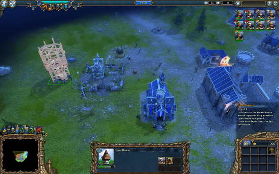 这关任务是摧毁所有的Vampire Castle(吸血鬼城堡)。一开局钱少的可怜。市场肯定是要放的,还要建造盗贼和游侠工会(便宜)。不管有没有钱招英雄,肯定要在基地北面放下警卫室。马上僵尸打过来,攻击附带毒性,单靠英雄的话,肯定要死人。