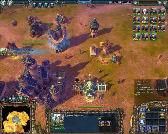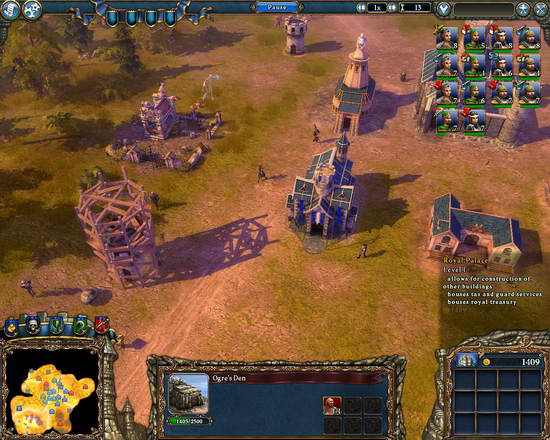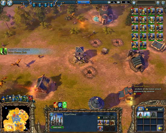中后期防守压力大很多,之前的哨塔完全不顶用。现在应该建造Dwarven Tower(矮人塔?还是叫一代的弩楼算了)。这塔攻高血厚,很扎实,钱要求也比较高,最好四个角都造上。