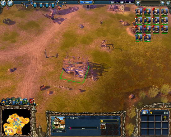在你基地的六点方向,也就是南方,有马车这样的的地方,修建Trading Post(贸易站),在经济建筑里,它会自动运马车给你市场送钱。