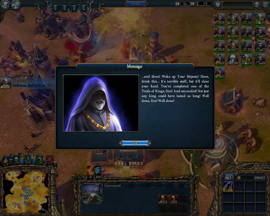 同时,你英雄死后会出现Graveyard(墓地)。可以复活你的英雄,前期假如阵亡英雄等级低,你就先回工会找一个,然后在复活,相当于不用建造第二个工会就增加你英雄数量,绝对划算。也要补上一个Inn(旅馆),要么你额外的英雄会很快离开你的王国。还有墓地会出现骷髅兵等怪物,记得防守。