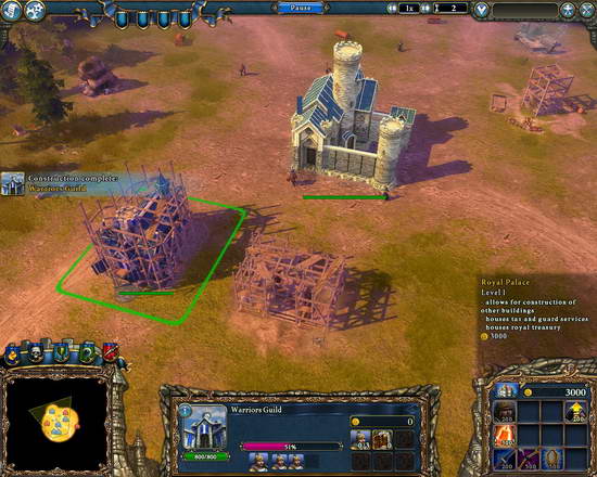 继续放下Elven Bungalow(精灵小屋)、Wizards Guild(法师工会)和Dwarven Settlement(矮人驻地),招募蛮,这些英雄由于等级比较低,阵亡率较高,注意保护好。
