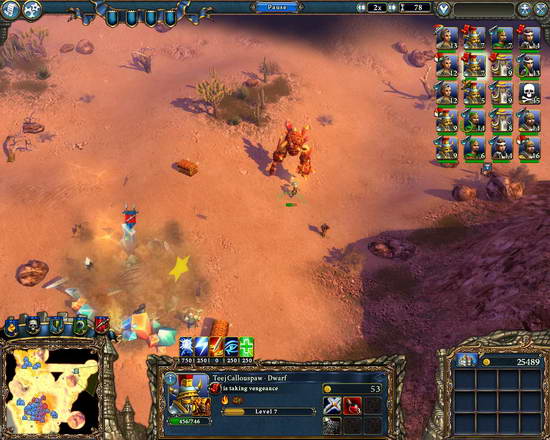 塔拆完以后,就要杀掉Dark Mage(黑暗法师),先攒钱把阵亡英雄复活后(特别是你想过关后选择当领主的英雄),再次人海踩过去,这关的确是矮人的天下。我玩得时候,这个法师很不幸运的冲进我的弩塔阵,外加一个矮人就把他劈死了,残念。。。。。。。。