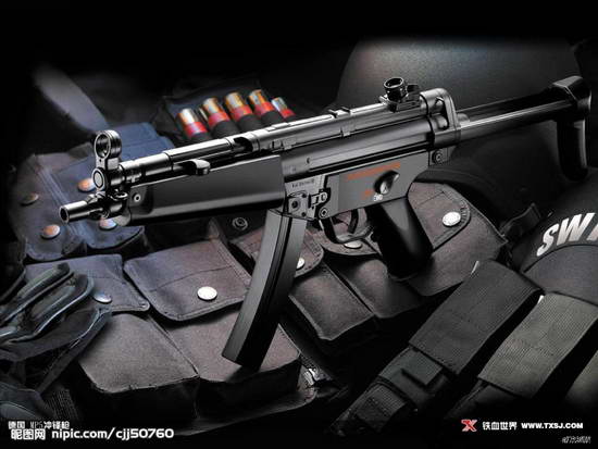 MP5是由德国HK公司开发研制的微型武器。1966年秋,西德国境警备队将试用的MPHK54命名为MP5(MachinePistol5)冲锋枪。这个试用的名称就这样沿用至今。同年瑞士警察也采用了MP5,成为第一个德国以外采用MP5的国家,西班牙特警也渐渐装备。20世纪70年代是都市游击战的疯狂年代,恐怖分子袭击重要人物时多采用火力猛烈的冲锋枪和突击步枪。而保护要人的警卫感到需要同样火力猛烈的全自动武器,而且为出入公众场面,这种武器还需要像半自动手枪那样可以隐藏在衣服下,避免引人注目,而MP5满足了上述要求。