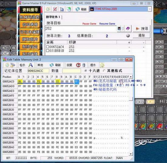 再放1本 第一格现在有3本,回到gm8 搜素 252,现在只有2-3地址了