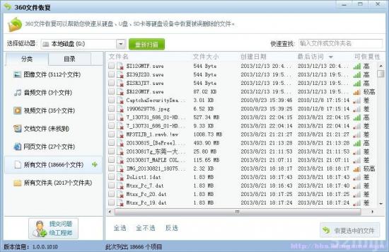 正常的存档用记事本打开以后,里面会有很多乱码之类的文字,接着,把那个损坏的存档删除掉(删除之前一定要先备份一下全部的存档文件,以防万一,切记!),然后到回收站里去清空回收站,好了,接着用360的那个文件恢复功能,找到刚刚删掉的存档,我刚删掉的存档是在G盘,所以选择驱动器那里我选的是G盘,