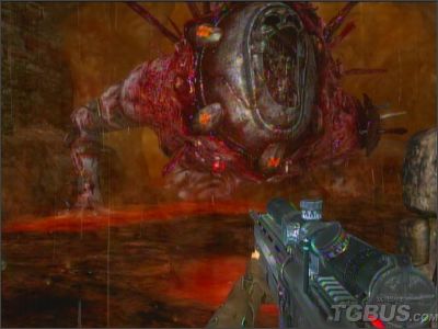 连续的BOSS战,首先把如图恶心的东西全部打环,这样才能杀死BOSS,BOSS的弱点在胸部,用榴弹猛攻即可。