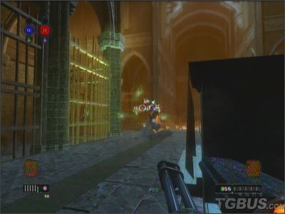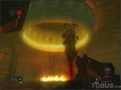 依然是BOSS战,对这个BOSS方法很重要,BOSS有两个,普通攻击对他们都无效。首先要把传送轮上的尸体打坏,这样上面的BOSS会转身,他的背后是弱点,抓住时间猛攻,一段时间BOSS会恢复原状,如此反复就可把上面的BOSS消灭,剩下的一个也没有了保护,几下就可解决。
