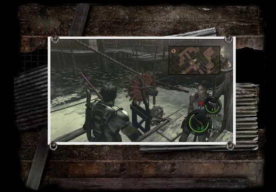 让女主角在摇杆前按b键等待~男主角来到另一处的浮木上,这时女主角就会拉动我们来到开关处。当然水中的鳄鱼仍然会攻击我们,这时要注意河里的鄂鱼,一出现马上按LT+RT !!