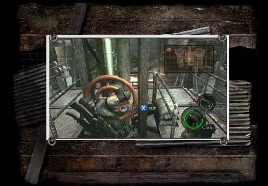 消灭完刚开始的敌人,从二楼的上图处关掉左方火焰,再次有大量敌人出现~~~继续清场吧,清场结束从那个出路找到如下图中的开关拉下,然后乘坐滑杠来到另一处,这里可以关掉另一处的火焰!这时会有一电锯男出现~~解决后仍然有好东西