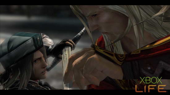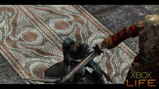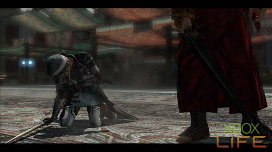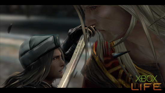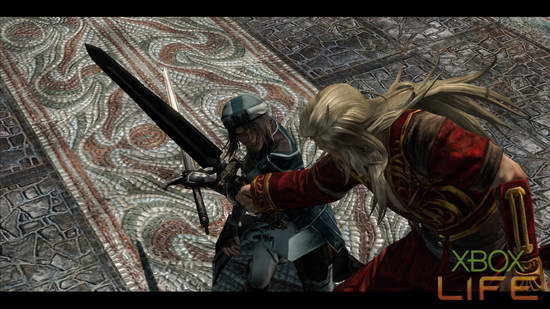 两人一路打到菲提娅之心(ヴァレリアハート)底下,霸王一个重砍,打断了艾玛挡剑的右手,艾玛跪倒在地上,眼中看到了死亡,正当霸王大剑一挥之时,艾玛用剩下的左手抓起了剑,闪过了霸王的攻击,零距离的往霸王脸上砍了过去,眼看剑离霸王的脸不到几公分,画面一闪,霸王用两只手指挡下了艾玛的剑。
