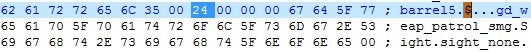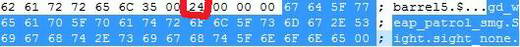 gd_weap_sniper_rifle.Sight.sight5.长度是34,换算成16进制,则是22,将画红色圆圈的“24”改为“22”,再保存,就可以进入游戏了~