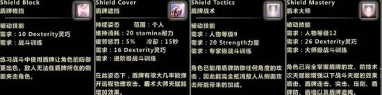 Row #3:Shield Block → Shield Cover → Shield Tactics → Shield Mastery