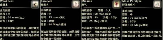 Row #1:Weakness → Paralyze → Miasma → Mass Paralyze