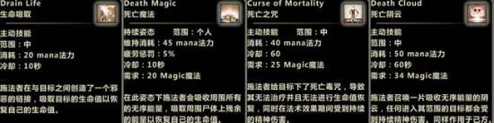 Row #4:Drain Life → Death Magic → Curse of Mortality → Death Cloud