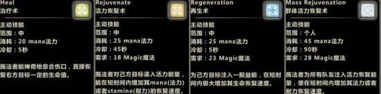 Row #1:Heal → Rejuvenate → Regeneration → Mass Rejuvenation