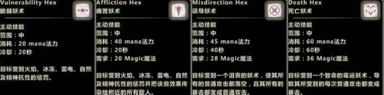 Row #2:Vulnerability Hex → Affliction Hex → Misdirection Hex → Death Hex