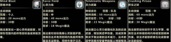 Row #4:Mind Blast → Force Field → Telekinetic Weapons → Crushing Prison