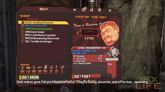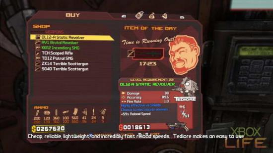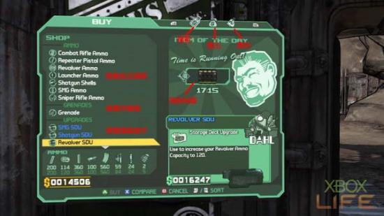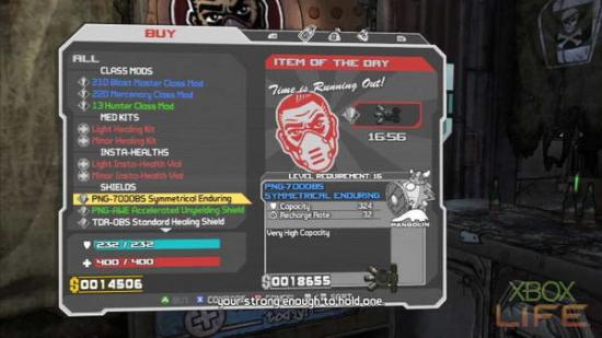 印有救护十字LOGO的贩卖机,则是贩售各式各样战斗时所需的装备。例如「使用它时感觉不到它存在」的能量护盾,或者是额外增加角色能力的CLASS MODS,这裡统统都能花钱购买到。值得注意的是,玩家在购买能量护盾时,记得要先查看右下方的素质,CAPACITY是能量护盾的上限值;RECHARGE RATE则是回复充电时间,玩家必须仔细挑选这个项目的能量护盾,才能确保你在战场上受伤后依旧像条活龙。