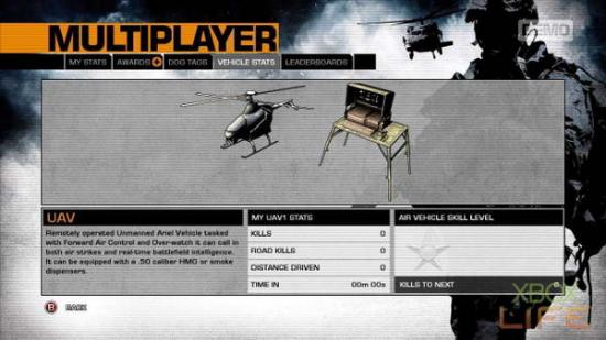 《战地风云:恶名昭彰2》裡除了以往常见的载具外,最有趣的就是这套名为无人飞行载具(UAV)的「玩具」。玩家可以在控制平台上操作武装的摇控直升机进行搜索敌人,上面还搭载了简易机枪,可以用来攻击地面部队。不过这类型的UAV非常不耐打,狙击枪只要一发子弹就能把它给射下来。