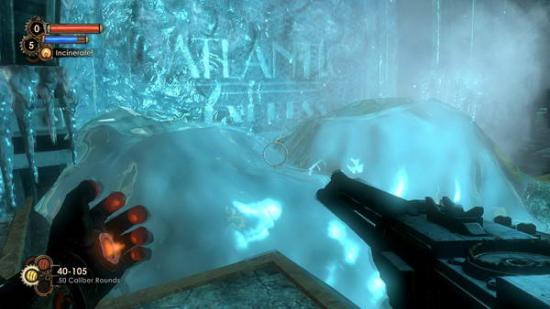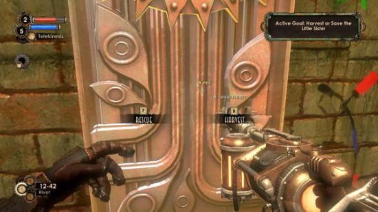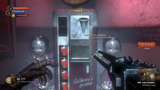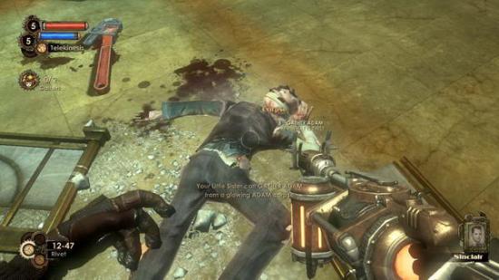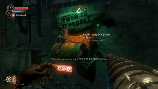 这次可以用它升级能力了,可惜我还没有资源,走回去从大厅正面进入,OK,终于到了BIG DADDY了,准备好了吗。