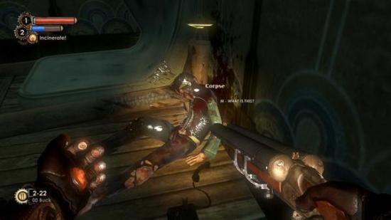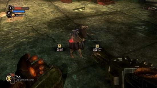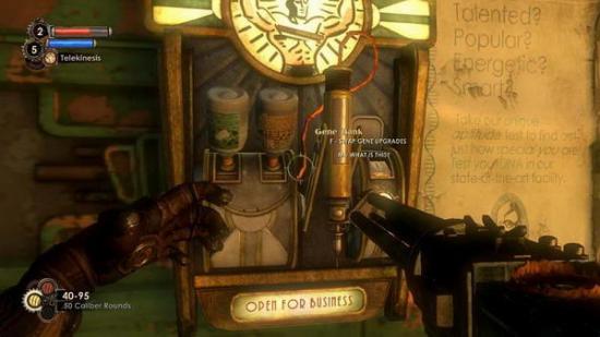 最终解决了BIG DADDY。抱起小女孩然后在R的指引下找到2具尸体,吸血,保护好小女孩对现在的你来说应该不成问题。一侧有个可以提升能力的机器。机器的另一面就是一个Vent,我一时手快在只有吸了一个尸体的情况下把小女孩F了进去,OMG,我就这么浪费了40点,关键是我没保存。。。如果看到疯子一样的 大块头,