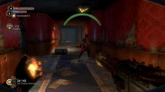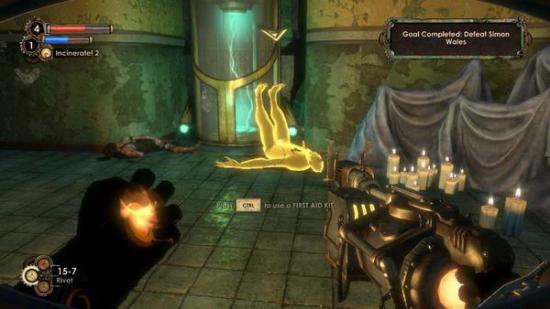 然后BIG SISTER就又来找 你谈心了,解决了它,特别提示,你可以在JOE’S Green Groceries里的柜台后找到红色按钮,按下后可以进入后面的密道,了解到1代的Frank Fontaine的故事,当然也有些其他的东西可以捡,不过要小心埋伏哦。跟着箭头去杀个强化的钩子男,