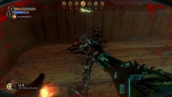 一共3条,全F掉哦,进去扳个开关,抽掉水后一进门就能看到BIG DADDY秒掉3个杂兵的场面,OK,但是我们依 然得杀了他,谁让他带着小女孩呢。