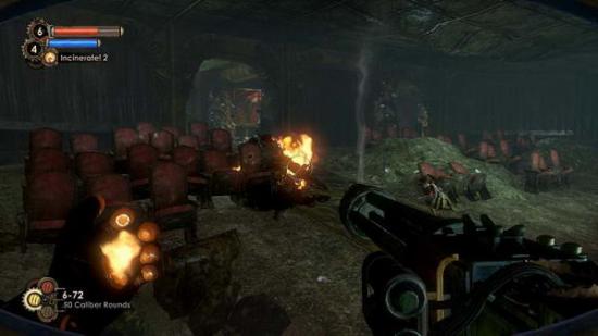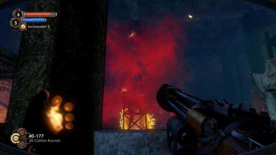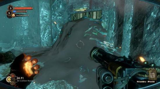 然后在一个浴缸里拿到了威力十足的最后一把武器,走到列车那,控制室里的人让你去找小女孩,注意他在说话的时候会有一个和之前那个差不多的会变黑雾的敌人出现(话说现在的机器破解难度越来越高了啊,我是的是蓝色部分),OK,Let’s go。事实上,之后很多敌人都会变雾,火烧变成了相当实用的技能,之后去解救3个小妹