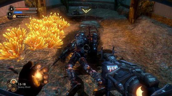 用火点燃她,之后一轮射击就能解决她。之后跟着箭头前往2楼,之后便跟着箭头一路前行,穿过海底隧道