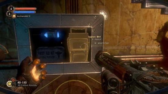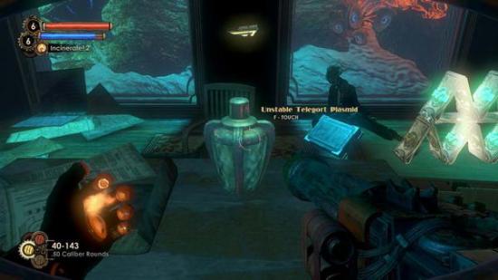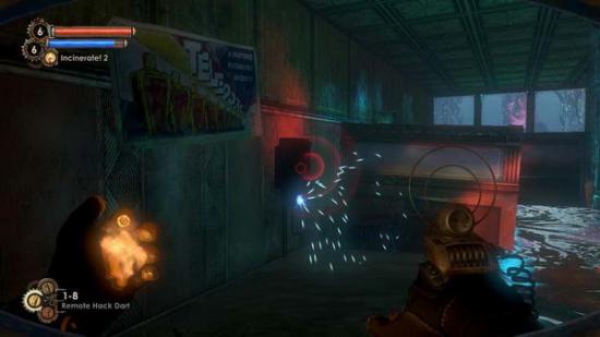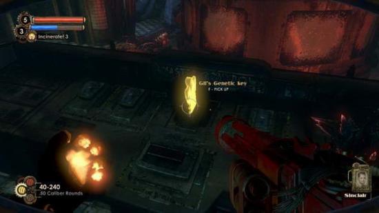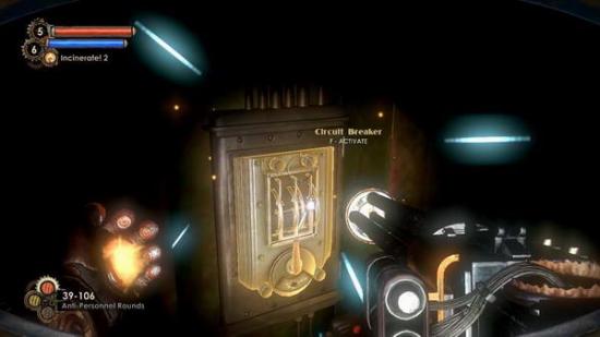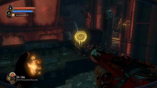 F了2次后会在外面的房间出现,之后跟着彩瓶一路走一路摸一路杀,对于头上有红圈的人和机器,把人杀掉机器就掉下来可以破解了,如果不知道往哪走可以看箭头,最后摸了一下后放了几个画面,之后上去捡掉蓝瓶子,是个特殊能力,回头被闪白,回到了大厅,之后跟着箭头前进,之前的一处被玻璃挡着的地方也可以从一处蹲过去,然后前往最后一个地点,F上开关后,那个啰嗦的机器就会飞过来自己爆炸掉。前往箭头所指方向吧,打开开关,里面有台升级武器的机器不要错过了,接下来按下按钮,出去跟着箭头走,水手服的敌人可以用鱼叉枪瞄着头打,并无困难,知道进入最后的换气室,按下开关水路,水底的楼梯走上去顶部有一条亚当,穿过水路后来到黑漆漆的洞穴,不要怕,我与你们同 在,钻进去后靠右下去,