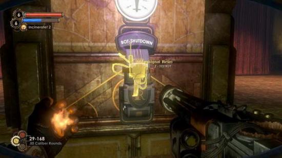 往后走打开之后的2个开关,然后跟着箭头行动,进去的小妹妹自然是要救的,所以开杀吧,把小妹妹送进Vent后,开启墙上的按钮,之后又45秒的飞行机器人攻击,手快的话黑掉也行,不然就打掉,总之别死就行。之后可以按下另一面墙上的开关,听一段东西,其实还是让你去其他3个地方搞破坏,也就是和之前一样在墙上的东西,首先来到西面的剧院,那个啰嗦的机器会叫来会雾化的4个敌人和一个穿水手服的家伙,干掉后 按下墙上的开关,