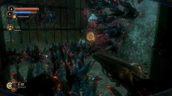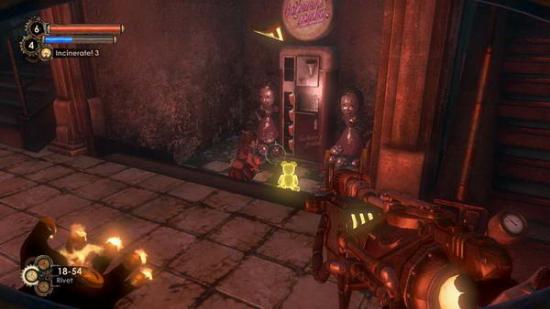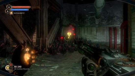 出去后一路清回去,记得有个门关着的房间,可从破裂的窗户那射开关,破解掉,门就开了,里面有升级武器的机器,返回把最后个小妹妹送进Ve nt。用强大的火力推倒大姐姐吧,