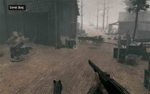到达这里 前面马厩里突然冲出一辆拖车挡住去路 并且出现不少敌人 全部消灭后 得到任务 掩护Ray去推车(如果你控制Ray 这推车的活就要你干了)