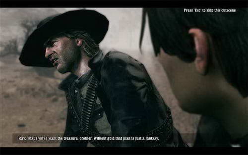出去外面看到旅馆前的马车 Thomas和Ray商量用声东击西的方法去偷来逃跑 但实际情况与其说是偷 不如说是抢 由于有Ray负责吸引火力 低难度直接跑向马车就行了 但高难度还是乖乖帮着消灭敌人再说吧 抢到马车后 三兄弟都上了车 无论你控制谁 最后都是由另外一方来操纵马车(行进路线是一样的)