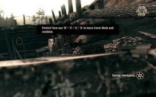 继续沿着战壕前行(看着任务标志走就行)【小提示:对敌时采用隐蔽模式能有效地给予你较大优势】