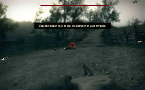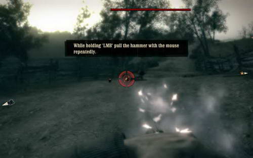 按住鼠标左键后出现提示【小提示:向后移动鼠标击打手枪的后扳机】