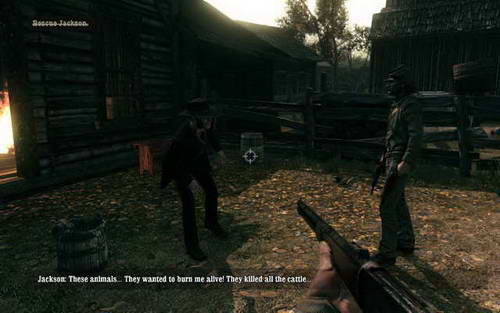 干掉这几个北方佬后 忽然听见呼救声 赶紧去救Jackson 来到任务标志处 没想到我们亲爱的Jackson先生正身处火海