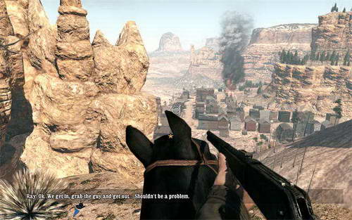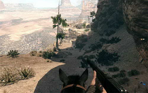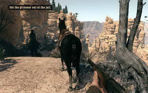沿崎岖的山路而下 到这里能看到关押着任务目标的小镇 千万别一时冲动从这里跳下去 只会连人带马粉身碎骨的
