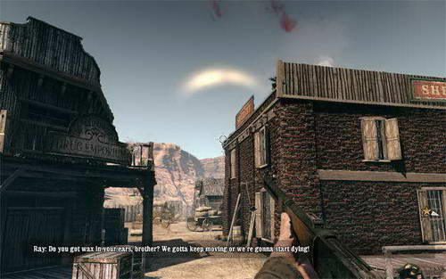 原来是中了埋伏 两边房上都有敌人在向你射击 小心找隐蔽物