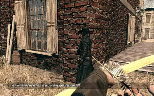 接下来来到窗边 Ray说“这窗户铁栅栏生锈了 只要让马拉就能拉开”:这时你只要把刚才骑得马骑过来就行了(顺便一提 如果控制Ray 可以用炸药炸开栅栏)