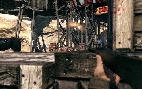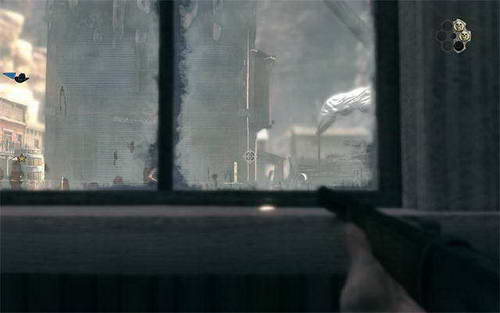 干掉所有敌人后 冲进任务标志处的门内 到这个窗户这里 可以直接干掉机关枪手 后面就简单了