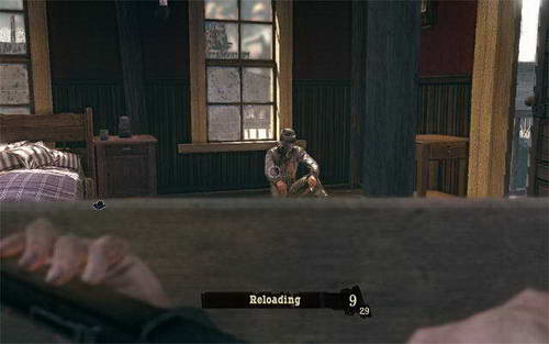 紧跟着大门也打开了从里面出来大批敌人 全部歼灭后 冲进酒馆 爬上2楼 终于在拐角中间的房间角落里见到了一个头缠绷带好似木乃伊的犯人(这段能不喘气读的佩服)