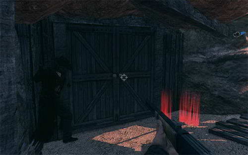 吊桥放下后 继续前进 消灭沿途零星敌人 又到了一个木门前 继续老战术