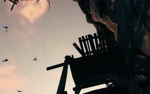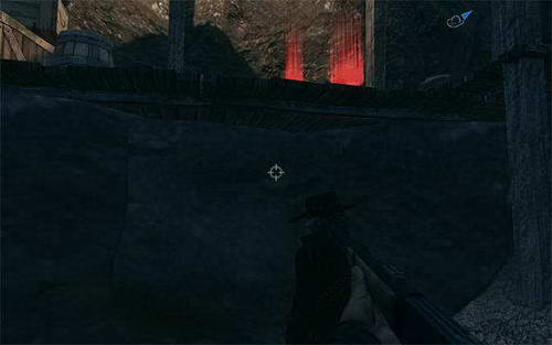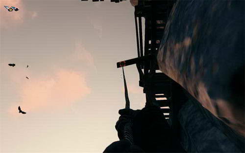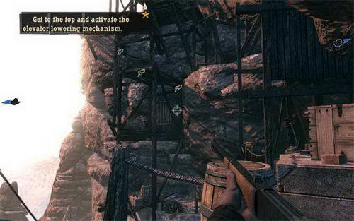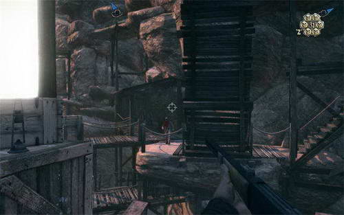 顺着木架子的楼梯慢慢向下爬 到这里会遇到敌人的阻击 这里顺便一提 难度越高敌人的双枪就越像机关枪 真汗